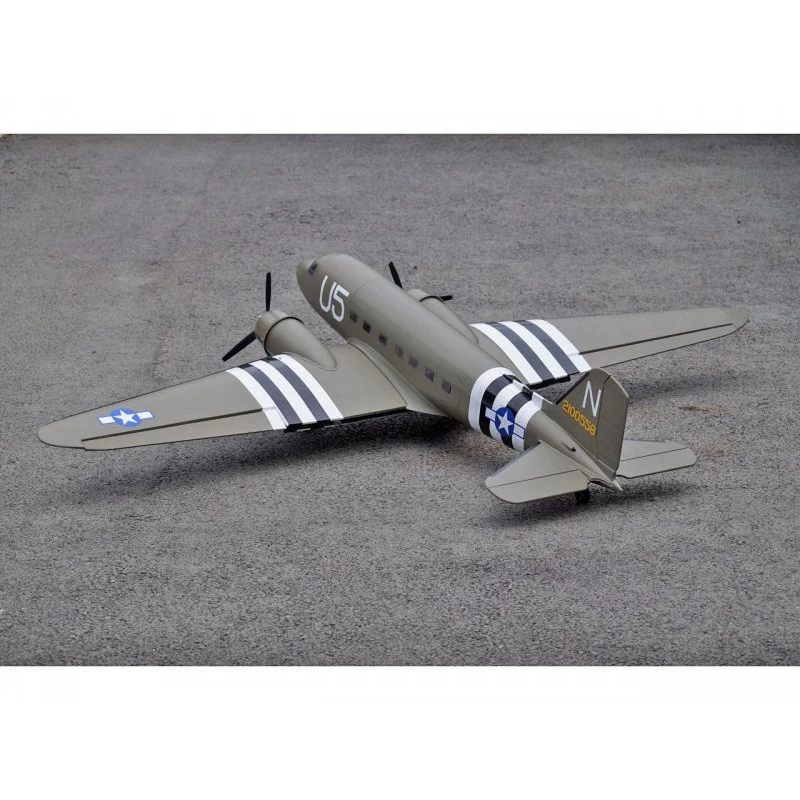 Douglas DC 3 / C-46 Sky Train -C9027 radiografisch vliegtuig van VQ Models, deze word geleverd met vele klein onderdelen.De vleugel is ribbenbouw en bespannen met folie, de romp is dmv spanten gebouwd en eveneens bespannen met folie.