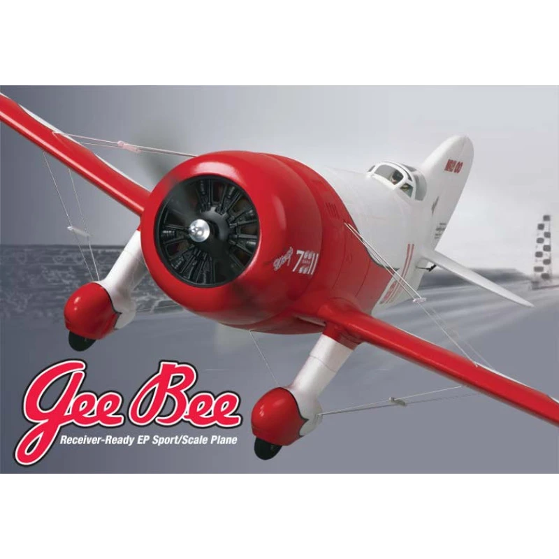 GeeBee ARF vliegtuig van Great Planes (ElectricFly), deze wordt geleverd inclusief borstelloze motor, snelheids regellaar, en heeft ingebouwde servo’s