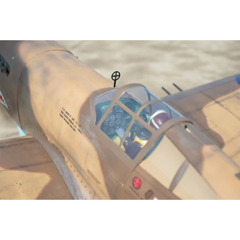 P-40C Tomahawk 2276mm Spanwijdte -C4951 warbird rc vliegtuig van Black Horse, deze word geleverd met vele klein onderdelen.De vleugel is ribbenbouw en bespannen met folie, de romp is dmv spanten gebouwd en eveneens bespannen met folie.