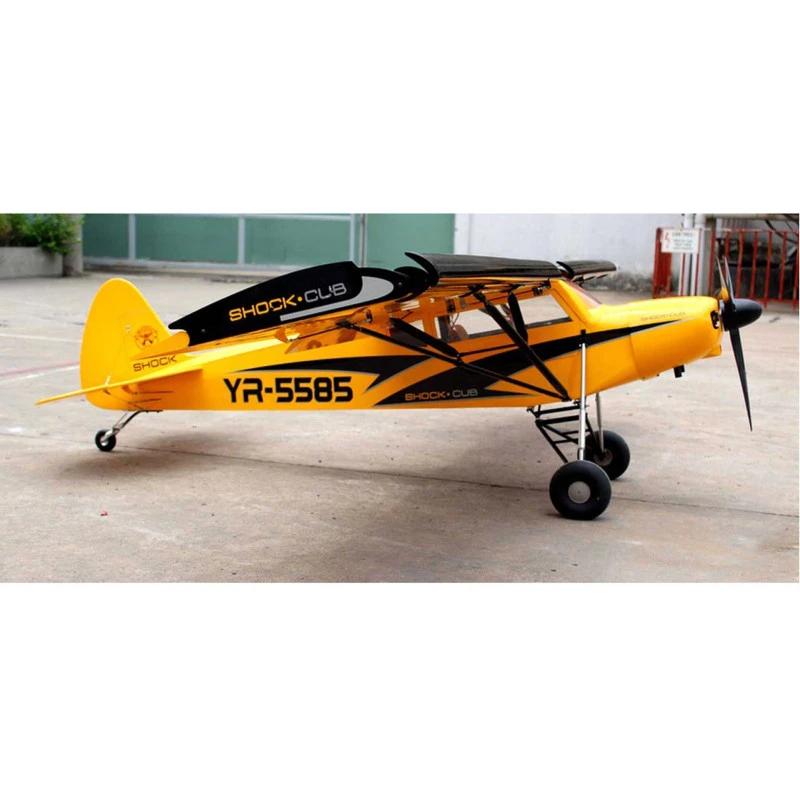 Shock Cub Geel 38-50cc 102 inch 2 Takt Benzine -9777333 Boven dekker vliegtuig van SG Models, deze wordt geleverd met vele klein onderdelen. De vleugel is ribbenbouw en bespannen met folie, de romp is dmv spanten gebouwd en eveneens bespannen met folie. Shock Cub 38-50cc-102 inck 2 Takt Benzine -9746849 is geschikt 38 tot 50 cc benzine motoren