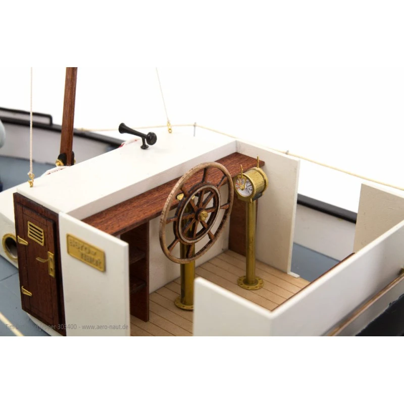 Aeronaut TIM Stoom Sleepboot -AE3034/00 radiografische bestuurbare Stoom sleepboot deze wordt geleverd als bouwdoos. De romp wordt door middel van spanten en latjes gebouwd.